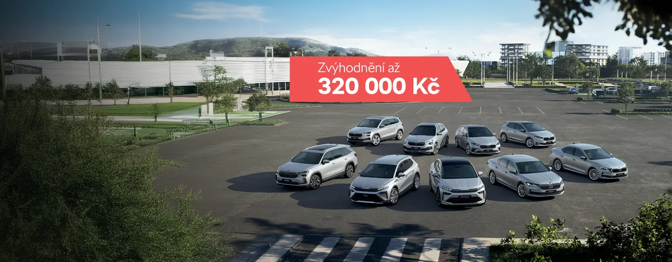 Ve výprodeji skladových vozů můžete získat slevu až 250 000 Kč. Pokud nám necháte Vaše auto na protiúčet získáte výkupní bonus do výše 70 000 Kč. V rámci akčních modelů 130 let nebo Classic & Dynamic získáte balíček služeb Škoda Prodloužená záruka a Škoda Předplacený servis (na 5 let nebo do 60 000 km) zcela zdarma nebo za zvýhodněnou cenu 5 400 Kč. * Nabídka končí s vyprodáním zásob.
